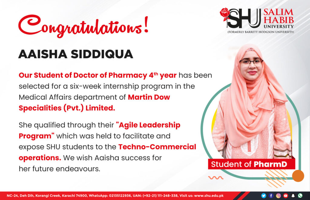 Congratulations Aaisha Siddiqua our Student of Doctor of Pharmacy 4th year for being selected for a six-week internship program in […]