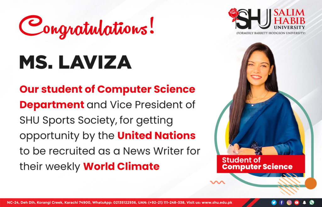 Congratulations Ms. Laviza, our student from the Computer Science Department and Vice President of SHU Sports Society, for getting the
