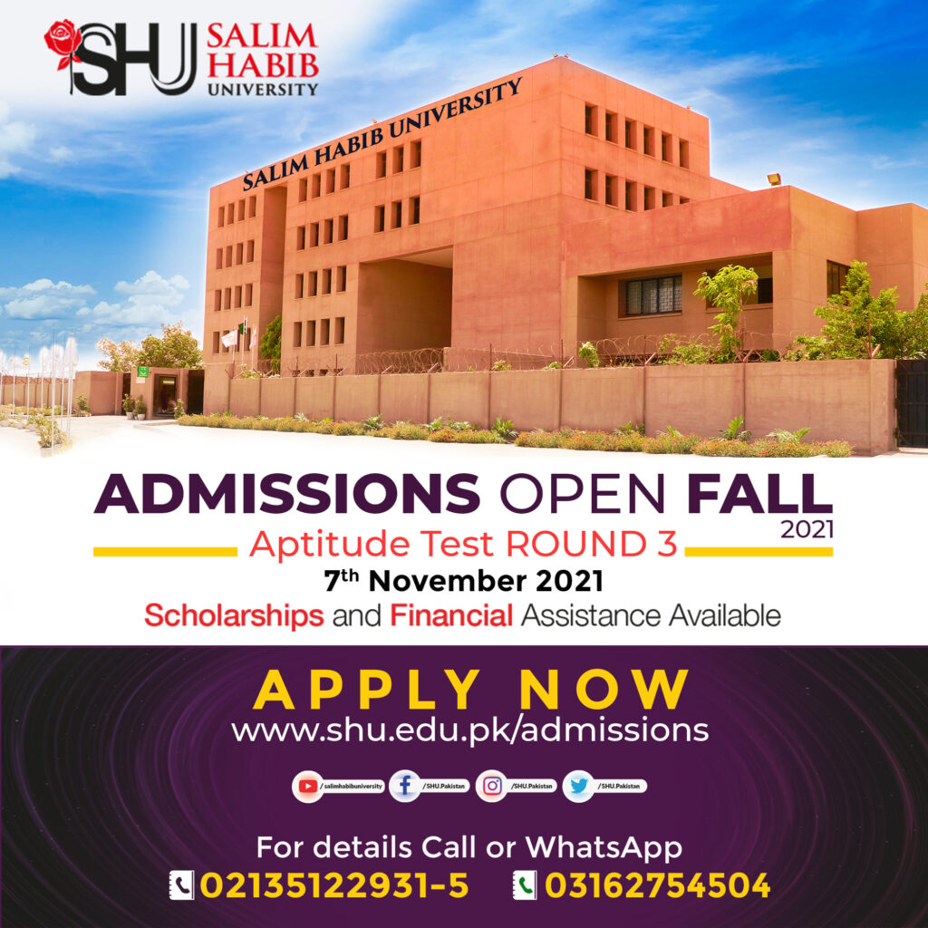 Salim Habib University’s Admissions are Open!The Admission test for Round 3 is on 7th-November-2021.Choose Salim Habib University (Formerly Barrett Hodgson