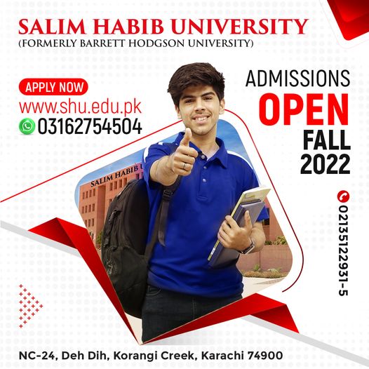 Salim Habib University's admissions for Fall 2022 are now open!To apply, visit https://www.shu.edu.pk/Home/Admissions.Your journey to success begins here!For any queries, […]