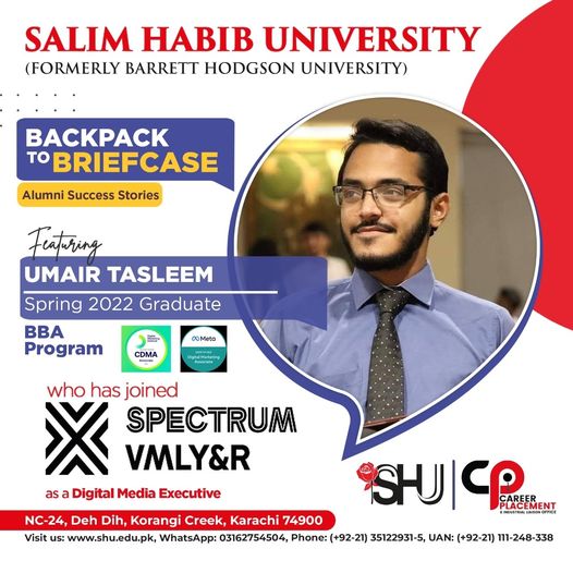In today's edition of the Salim Habib University Career Placement & Industrial Liaison Office's Backpack to Briefcase: Series of Alumni