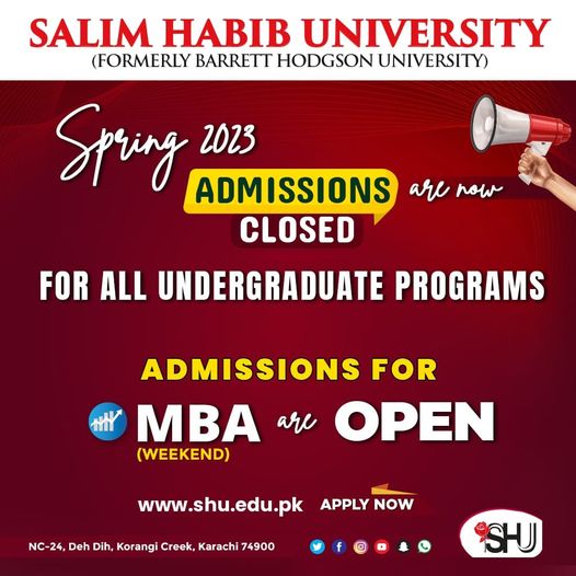 Admissions at Salim Habib University are now closed for Spring 2023 for all undergraduate programs.However, admissions are open for our