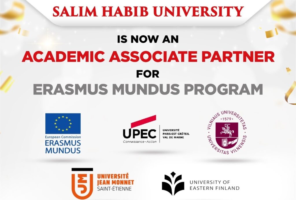 We announce with pride that Salim Habib University has secured approval from the consortium board of the European Union Erasmus