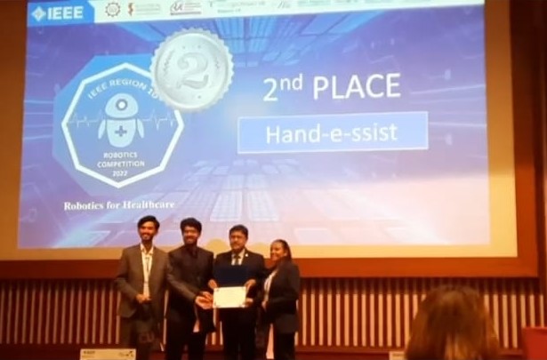 The Department of Biomedical Engineering at Salim Habib University is proud to announce that our students Adam Rafiq Jeraj, Mudasir Rafiq, and Mahnoor Maqsood have won Second Place at the IEEE Region 10 (Asia-Pacific) Robotics Competition which took place from the 17th to the 18th of December, 2022, at Chulalongkorn University, Bangkok, Thailand.They were awarded for their project 'Hand-e-ssist', an automated therapeutic arm designed with the aim of helping stroke patients recover from a stroke. The project, a 3D printed exoskeleton of the hand that can help paralysed patients in performing repeated activities without the need of a physiotherapist, has been supervised by Department of Biomedical Engineering Faculty Members Engr. Hassan Ali and Engr. Tooba Khan.We congratulate them and wish them even more success in the future!