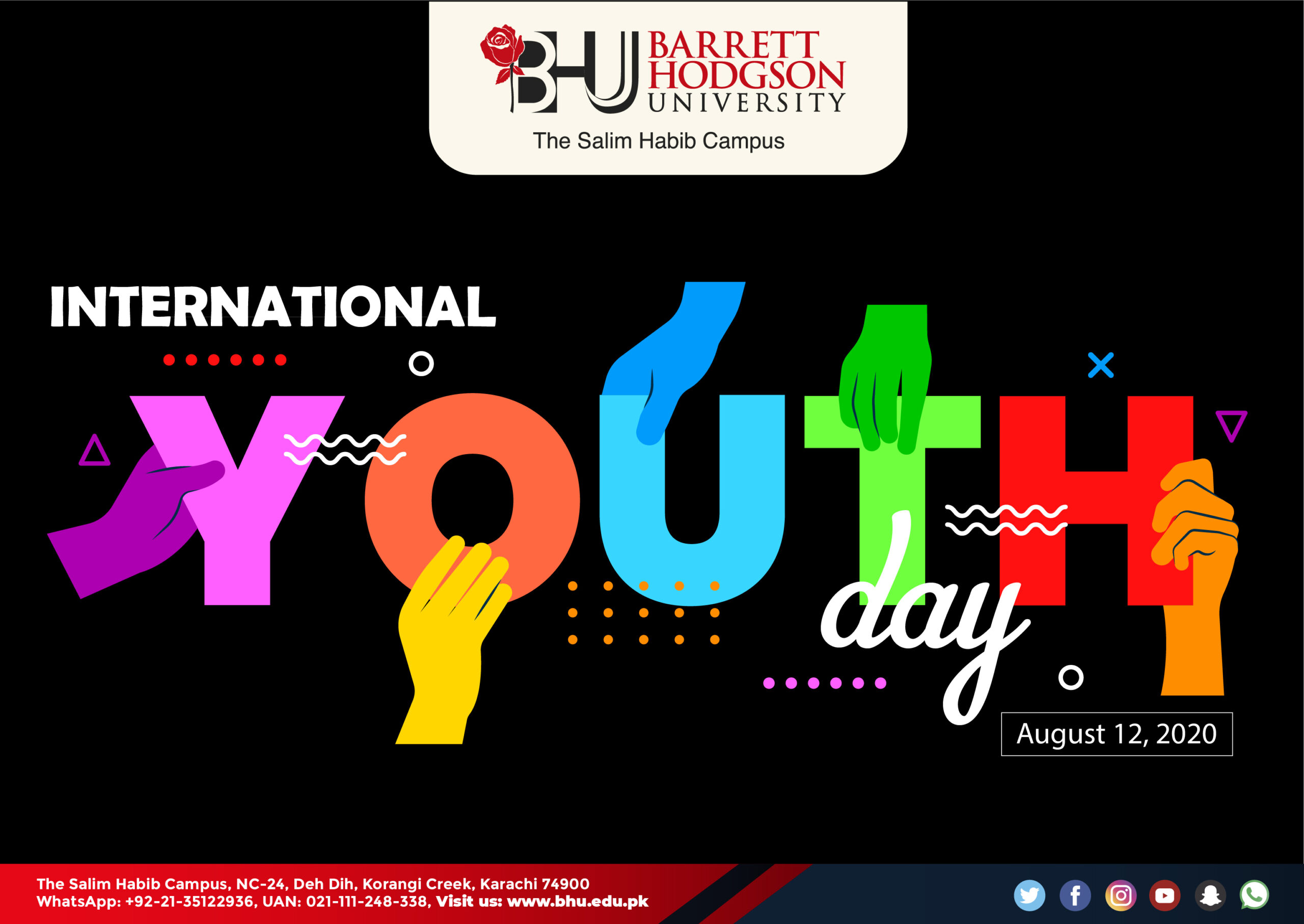 64% of the nation is younger than 30 and 29% of Pakistanis are between 15 and 29 (an age group which we define as the youth).’- Shakeel Ahmad, Assistant Country Director and Chief of the Development Policy Unit, UNDP PakistanOur #YOUTH with their energy and creativity can build a better future. Let us work together towards quality education, life skills, critical thinking, and a culture of peace, so you can participate, express your views and exercise your freedom, to make a significant difference. Only YOUth can make a difference#BarrettHodgsonUniversity #YouthDay #InternationalYouthDay #QualityEducation #BuildYourFuture #MakeADifference
