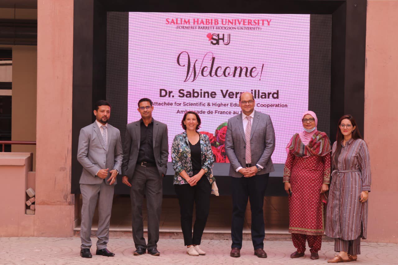 Salim Habib University welcomed Dr. Sabine Vermillard, Attachée for Scientific & Higher Education Cooperation, Ambassade de France au Pakistan, on campus for a visit today.Dr. Vermillard hopes to develop academic linkages between France and Pakistan through collaboration between the higher education insitutions of both countries. She visited SHU in order to explore opportunities for French universities to initiate bilateral programs with SHU, and for joint participation in EU programs.She encourages Pakistani students to apply for graduate and post-graduate degrees in France, and for Pakistani university professors to apply for research grants in France. She is also working to build an international strategy for exchanges for Pakistani students, and intends to bridge the gap between Pakistani and French academia.Dr. Vermillard was given a tour of SHU's extensive campus and facilities, and was introduced to our highly talented faculty and staff. She then gave a very informative talk regarding the many opportunities available for Pakistanis to pursue education and research in France.We hope this visit goes a long way towards building academic cooperation with French universities.