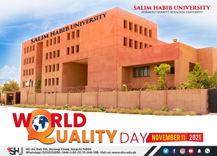 World Quality Day is celebrated to raise the benchmark of quality and recognize the efforts of hardworking professionals and employees.Quality is never an accident; it is always the result of high intention, sincere effort, intelligent direction, and skillful execution; it represents the wise choice of many alternatives.Salim Habib University delivers quality that empowers students, brings reforms and paves way for progress. Quality should not be just One Act, it should be a Habit.Happy World Quality Day.
